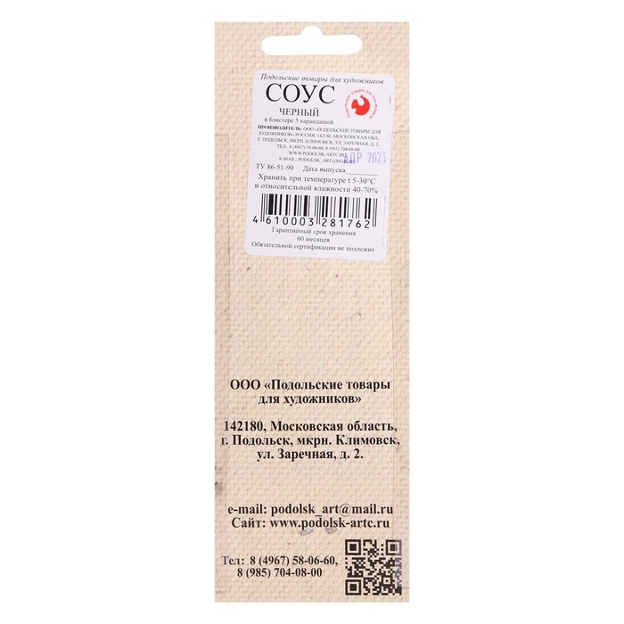 Соус черный, набор 5 штук (длина65± 1мм;диаметр 10.5 ± 0,6 мм), в блистере