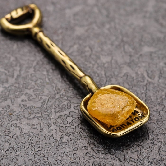 Сувенир кошельковый "Лопата", латунь, янтарь