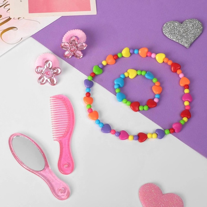 Комплект детский «Выбражулька» 4 предмета: заколка, 3 браслета, сердце, цветной