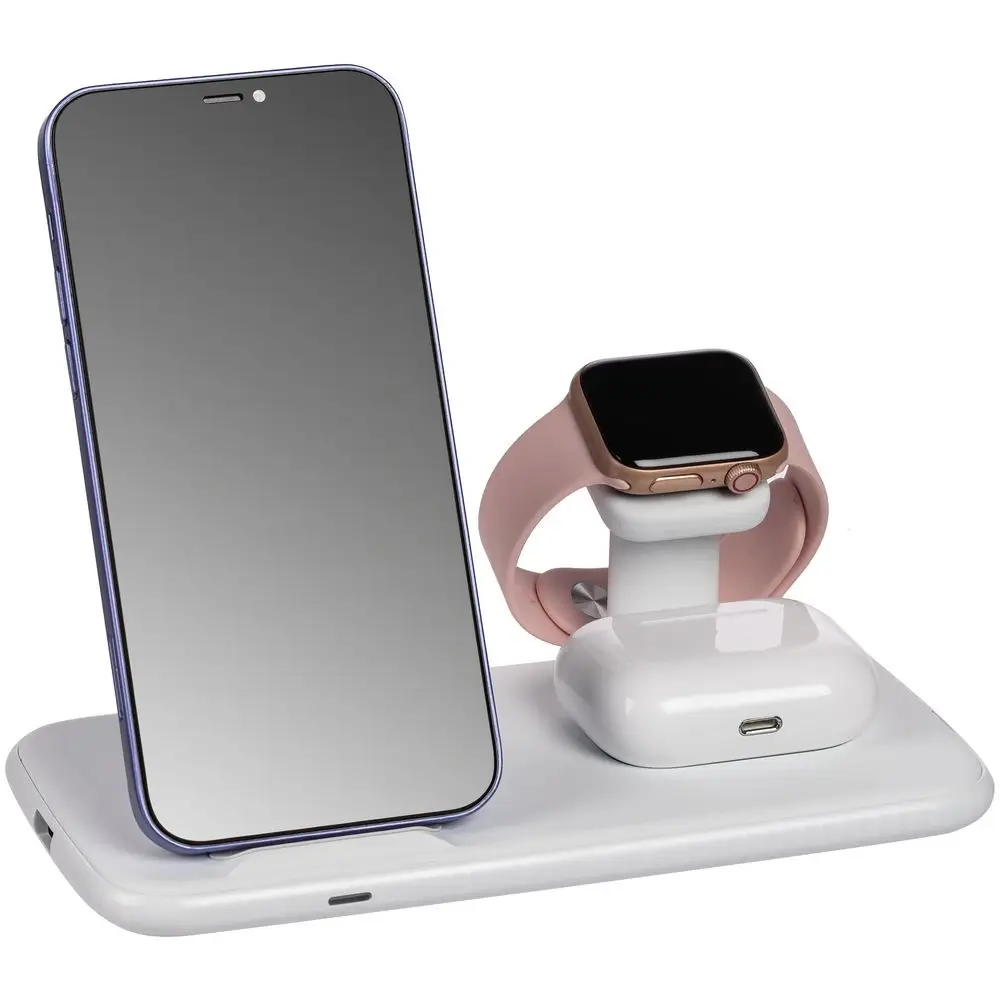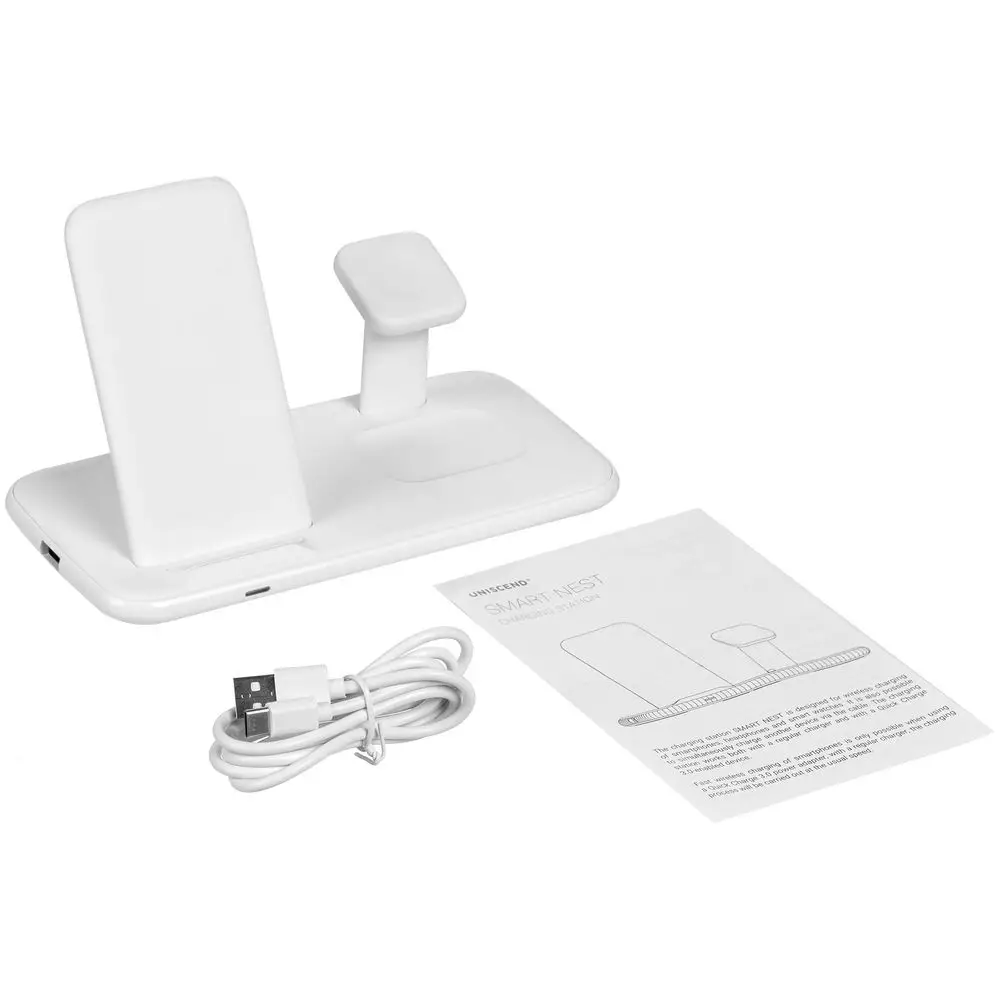 Беспроводная зарядная станция Smart Nest — новый подход к зарядке гаджетов. Вы сможете безопасно заряжать одновременно три устройства без провода и одно устройство через зарядный кабель. Cовместима со смартфонами на iOS или Android и часами (Apple Watch 2–6), наушниками от Apple.