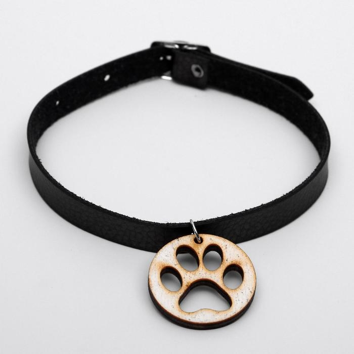 Декоративный кожаный ошейник с подвеской-лапкой (дерево), 34 х 1 см, микс цветов