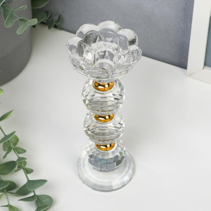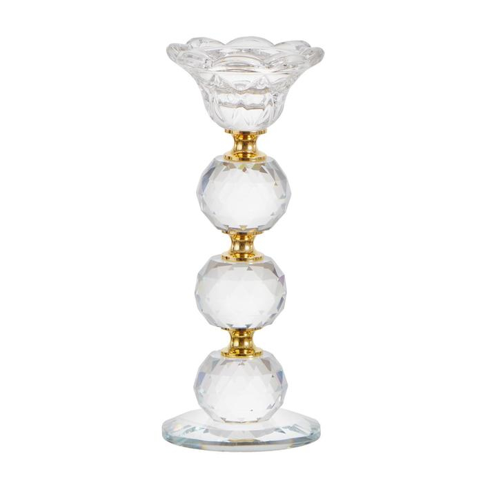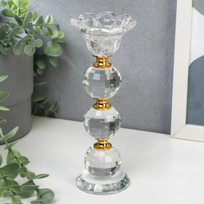 Подсвечник стекло на 1 свечу "Цветочек с тремя хрустальными шарами" 18х7х7 см