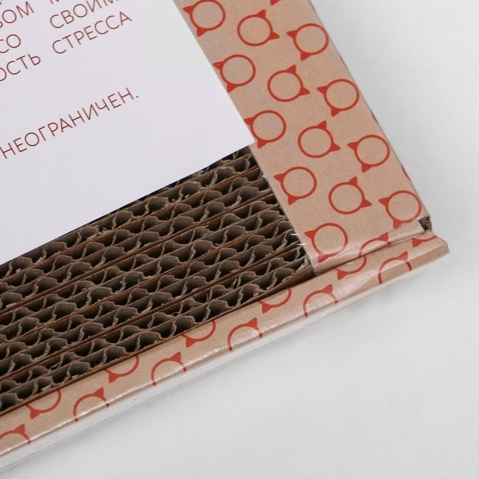 Он выполнен из гофрокартона, который изготовлен из природного материала - древесины и по своим свойствам очень на нее похож, чем и привлекают наших питомцев. Он достаточно плотен, чтобы выдержат острые коготки, и оптимально податлив, чтобы привлекать кошку.