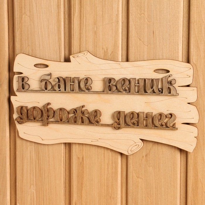 Табличка для бани "В бане веник дороже денег" 30х17см