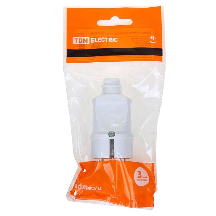 Вилка прямая TDM, 16 А, 250 В, IP20, с з/к, белая