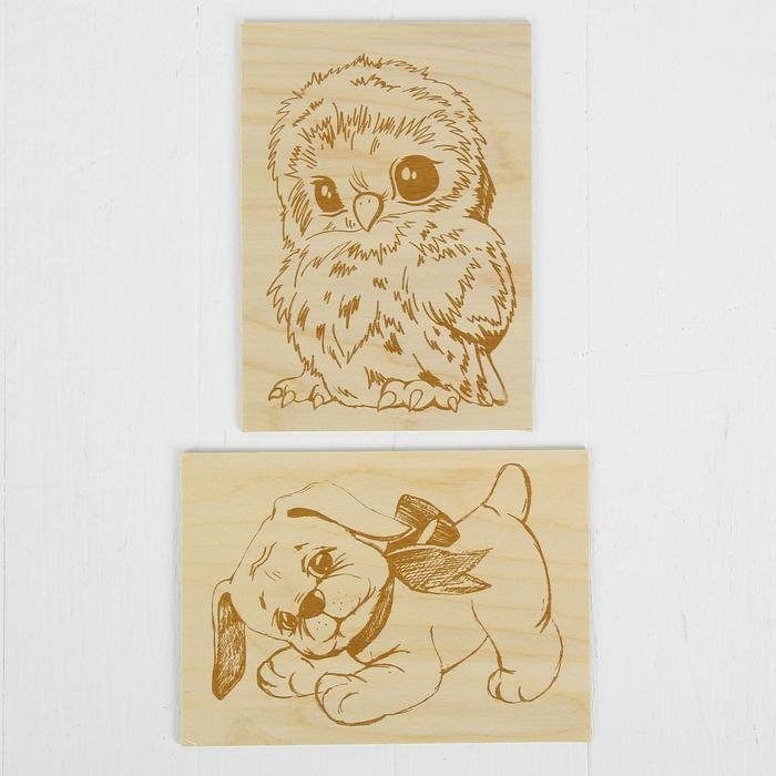Доски для выжигания "Совёнок и Щенок", 2 шт.