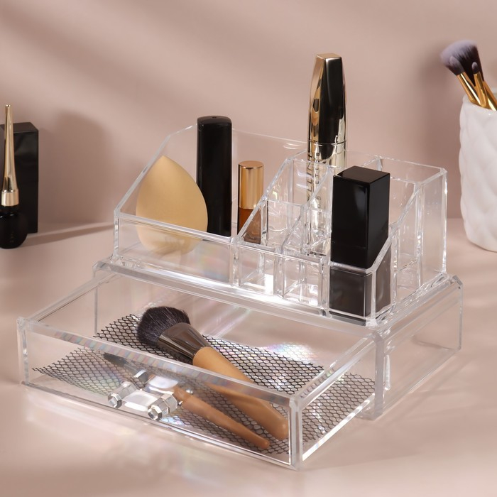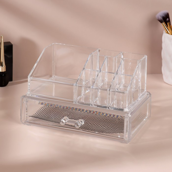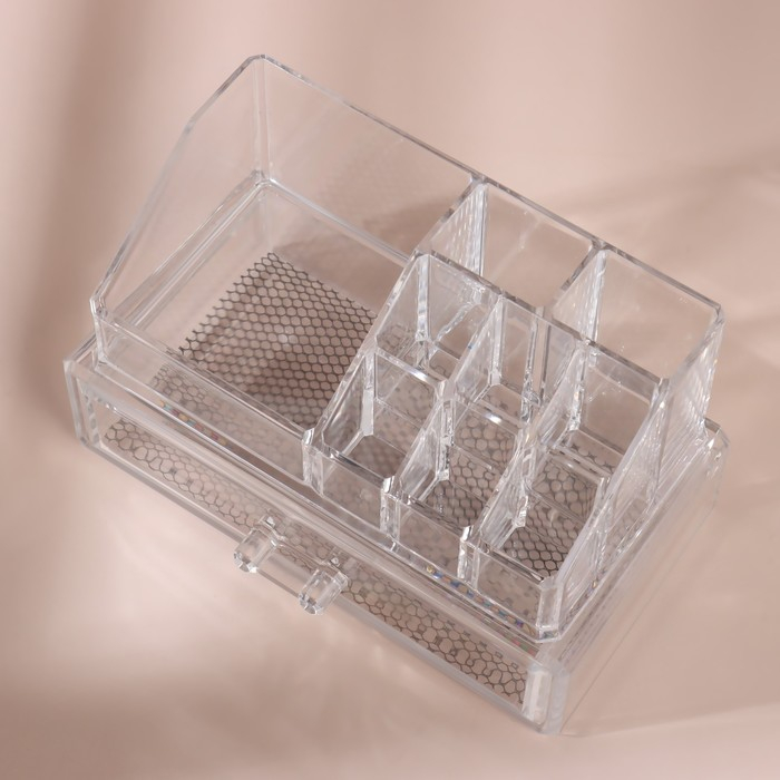 Органайзер для хранения, 9 секций, с выдвижным ящиком, 18,5 × 10 × 11,5 см, в картонной коробке, цвет прозрачный