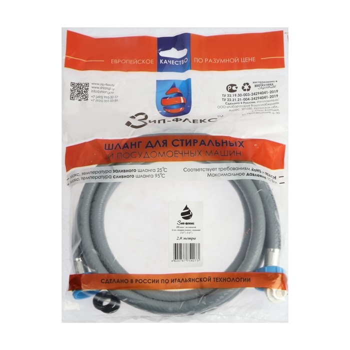 Заливной шланг для стиральной машины "Зип-флекс", индивидуальная упаковка, 2 м