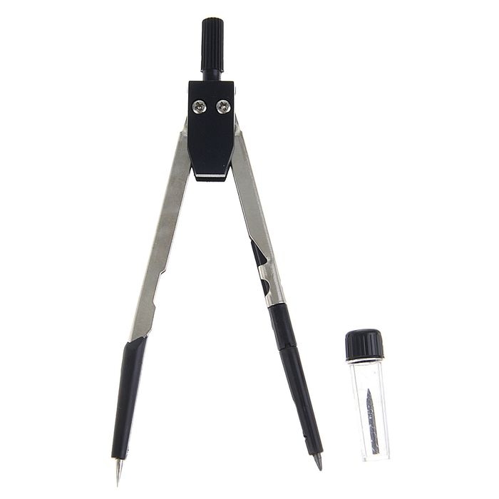 Циркуль металлический 120 мм Calligrata, в пластиковом пенале, с запасным грифелем