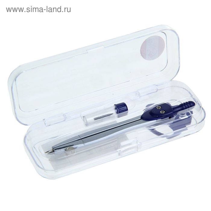 Циркуль металлический 115 мм, в пластиком пенале, крышка - линейка