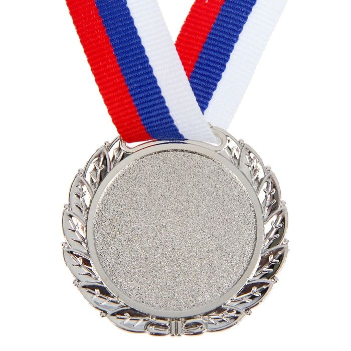 Медаль призовая 079, d= 6 см. 2 место. Цвет серебро. С лентой
