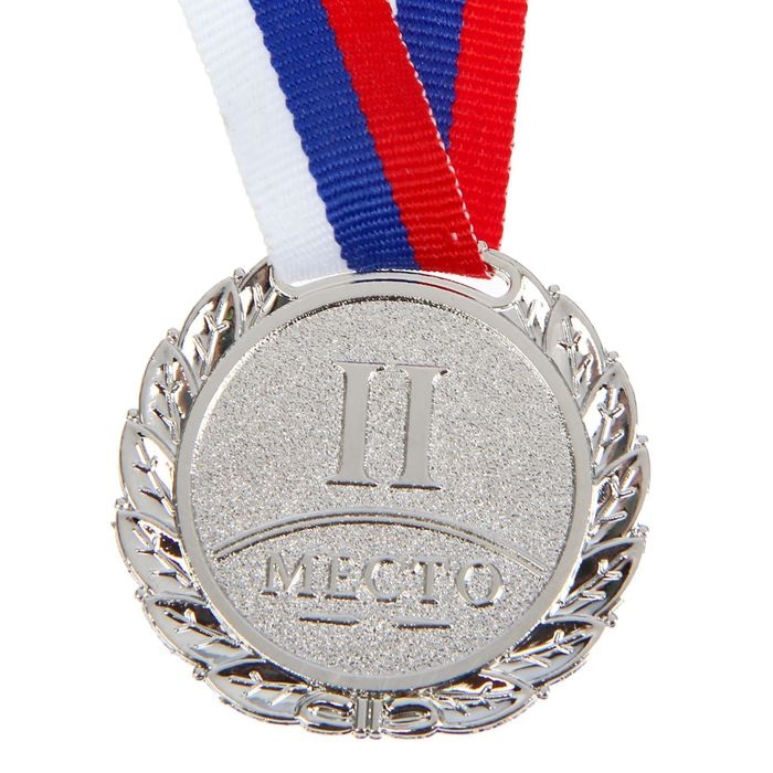 Медаль призовая 013, d= 5 см. 2 место, триколор. Цвет серебро. С лентой