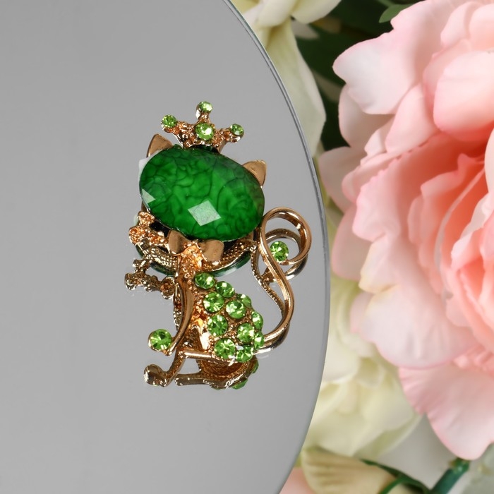 Брошь «Кошечка» в короне, цвет зелёный в золоте