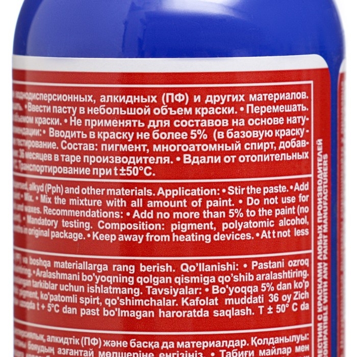 Используйте данную колеровочную пасту, чтобы придать желаемый цвет краскам, лакам, эмалям, затиркам и штукатуркам на органической или водно-дисперсионной основах.