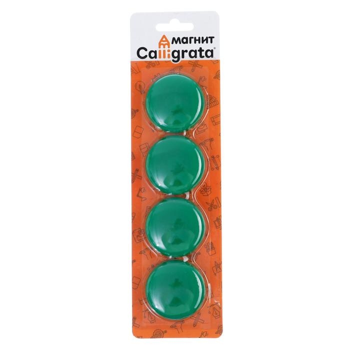 Магниты для доски, d-4 см, набор 4 штуки, блистер, зелёные