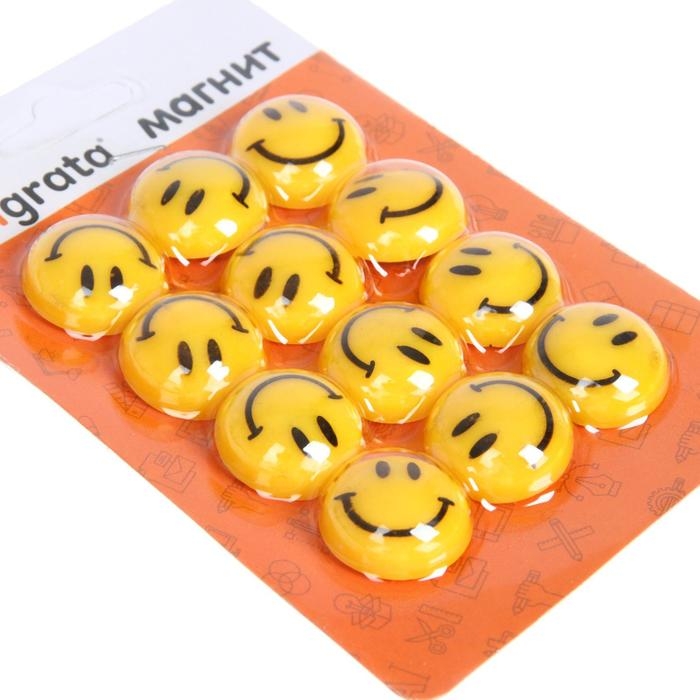 Магниты для доски, "Смайл", d-3 см, набор 12 штук, на блистере