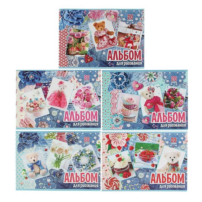 Альбом для рисования А4, 20 листов на скрепке "Для девочек", обложка изготовлена из плотной офсетной бумаги 120 гр, МИКС