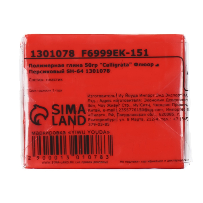 Полимерная глина Calligrata SH-64, 50 г, флюоресцентная, персиковая