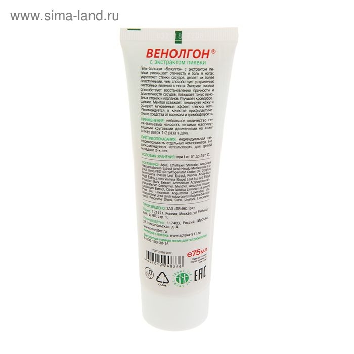 Гель-бальзам Венолгон с экстрактом пиявки, 75 мл