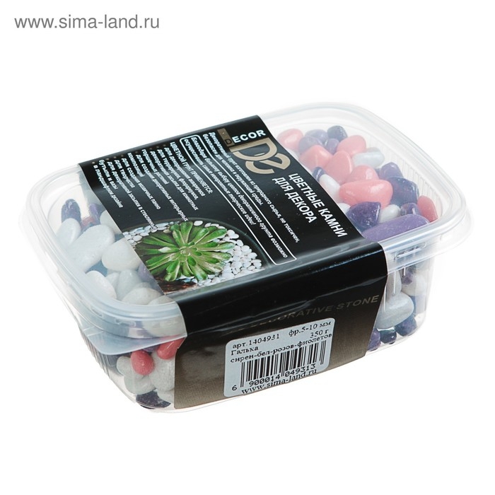 Галька для аквариума (5-10 мм) сиреневая-белая-розовая-фиолетовая, 350 г