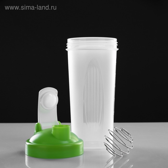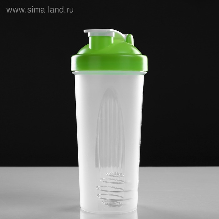 Шейкер, 750 мл, серия: CrossFit Max, "Мастер К", 22 х 9 см, зеленый сделан из безопасного пластика, поэтому подходит для воды, гейнеров, протеиновых и аминокислотных коктейлей, изотоников, соков, сывороток и т. д. Внутри ёмкости есть небольшой металлический шарик, который поможет вам разбить комочки смеси и получить однородную массу.