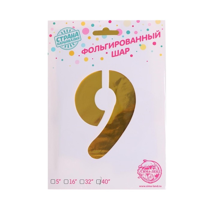 Шар фольгированный 40" «Цифра 9», цвет золотой
