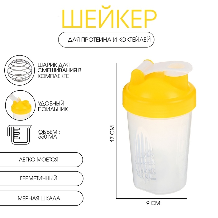 Шейкер спортивный для коктейлей и воды, 550 мл "Мастер К", 17 х 9 см, желтый