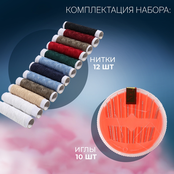 Швейный набор, 22 предмета, в чехле ПВХ, 13 × 9 см, цвет МИКС