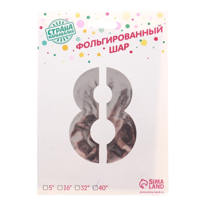 Шар фольгированный 40", цифра 8, цвет серебряный