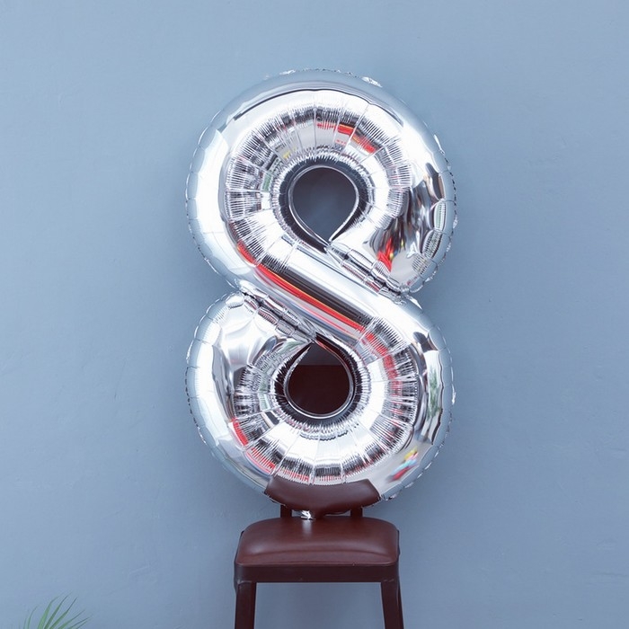 Если шар, то обязательно круглый? Вовсе нет! Яркий и лёгкий шар фольгированный 40", цифра 8, цвет серебряный создаст атмосферу праздника и станет выразительным дополнением к подарку. Огромная цифра поразит своими размерами, особенно маленьких детишек. Великолепный серебристый цвет придаст сказочный вид любому событию.