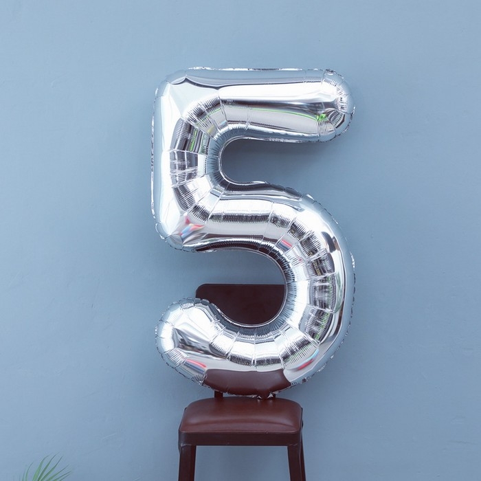 Если шар, то обязательно круглый? Вовсе нет! Яркий и лёгкий шар фольгированный 40" Цифра 5, цвет серебряный создаст атмосферу праздника и станет выразительным дополнением к подарку. Огромная цифра поразит своими размерами, особенно маленьких детишек. Великолепный серебристый цвет придаст сказочный вид любому событию.