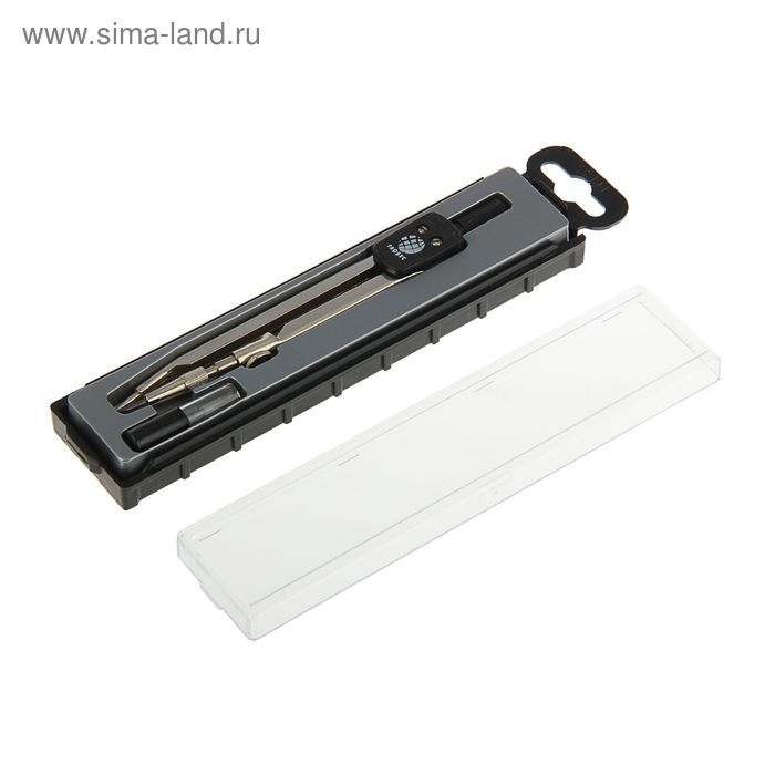 Циркуль металлический 115 мм, в пластиком пенале, крышка - линейка