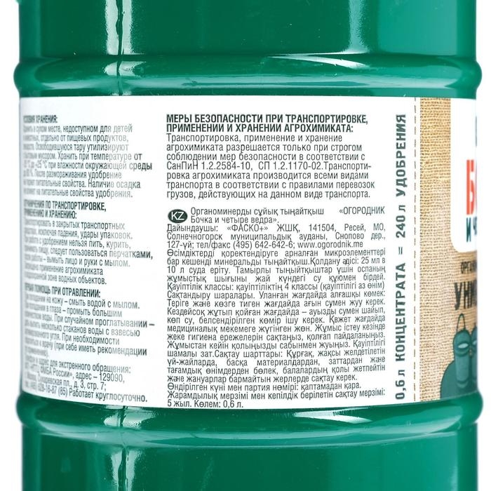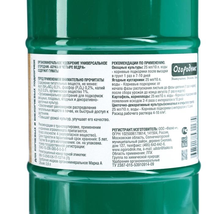 Удобрение органоминеральное жидкое Бочка и четыре ведра, 600 мл