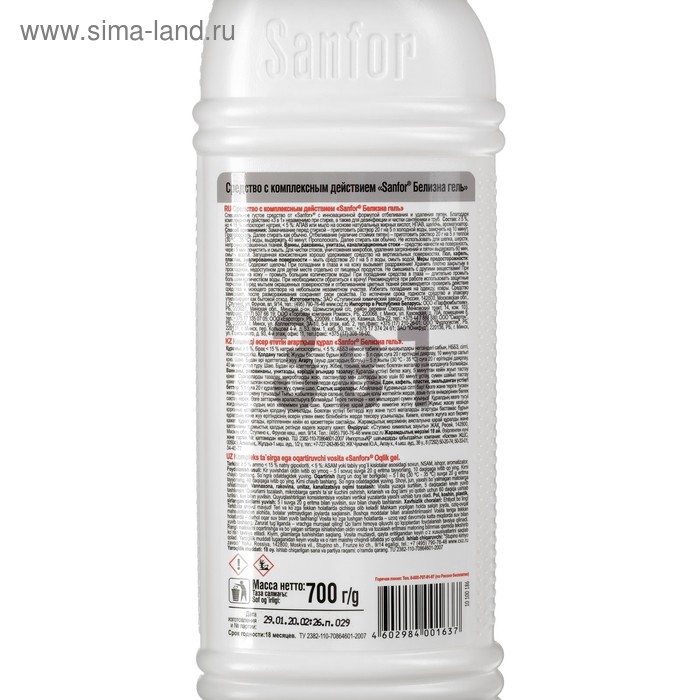 Средство с комплексным действием Sanfor "Белизна гель", 700 г