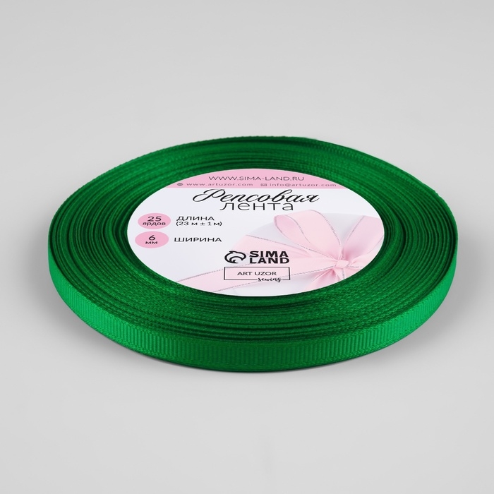 Лента репсовая, 6 мм, 23 ± 1 м, цвет зелёный №19
