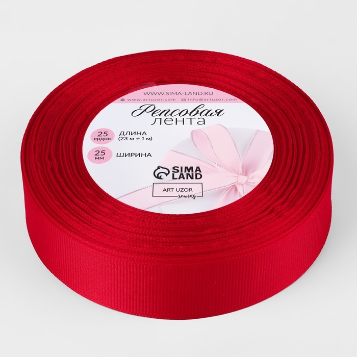 Лента репсовая, 25 мм, 23 ± 1 м, цвет красный №26