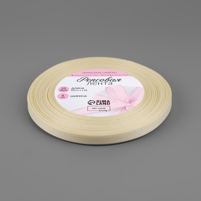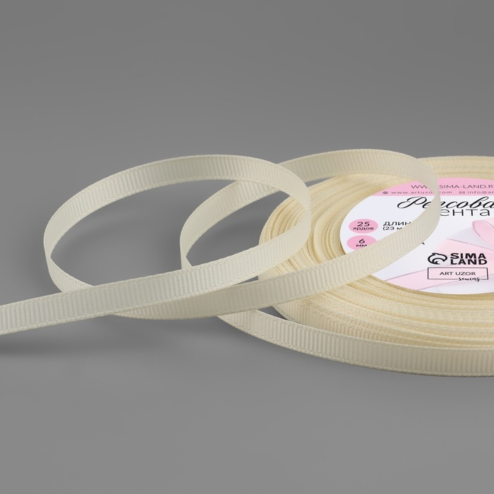 Лента репсовая, 6 мм, 23 ± 1 м, цвет молочный №08