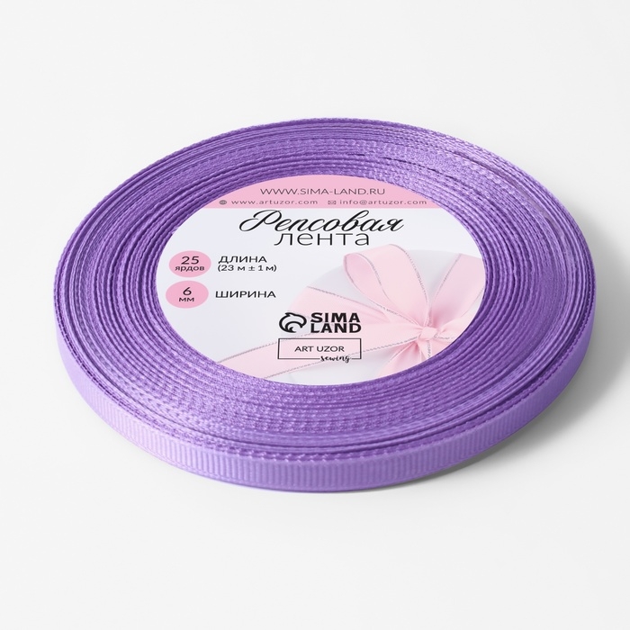 Лента репсовая, 6 мм, 23 ± 1 м, цвет сиреневый №21