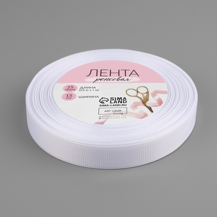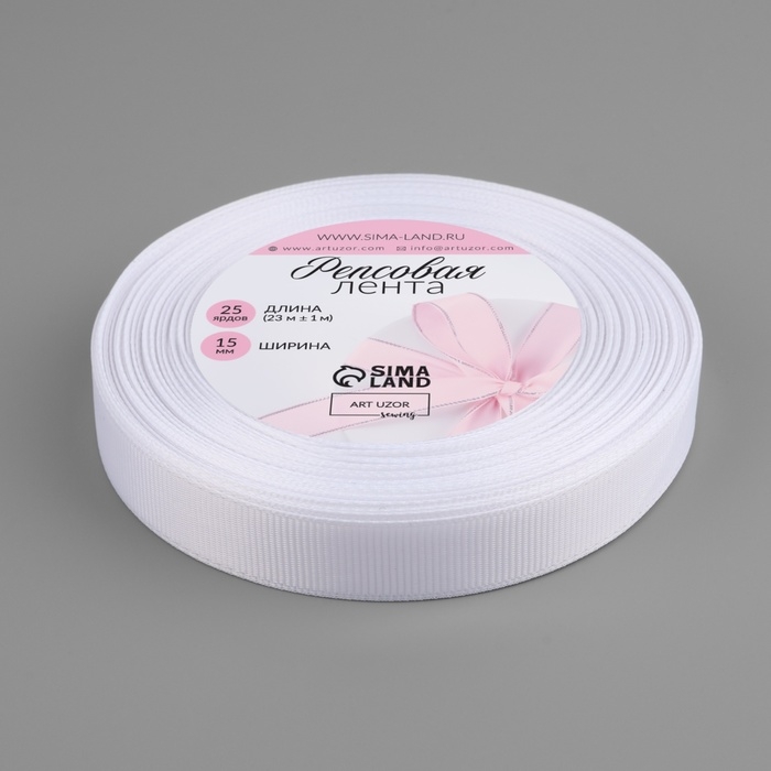 Лента репсовая, 15 мм, 23 ± 1 м, цвет белый №01
