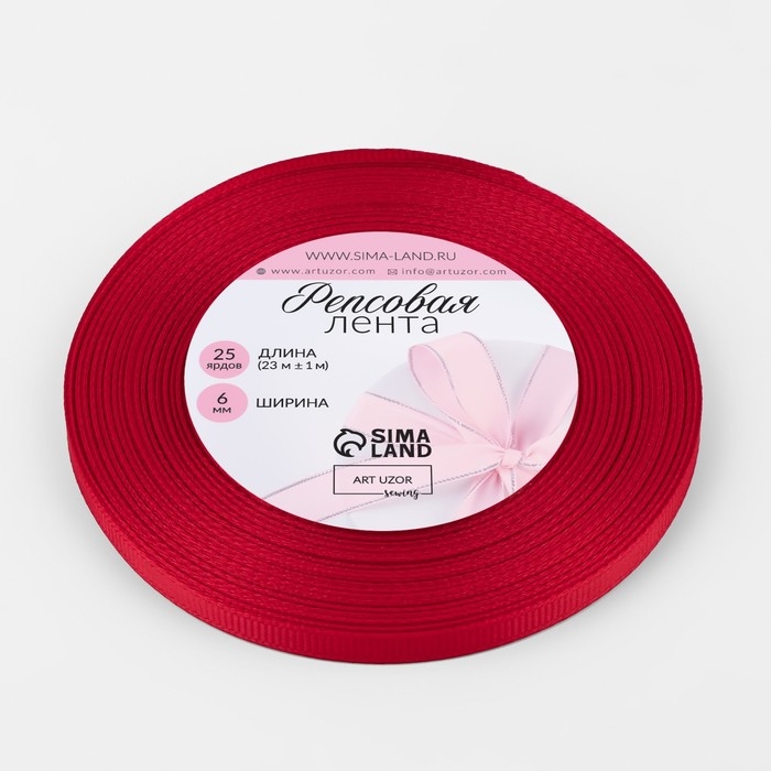 Лента репсовая, 6 мм, 23 ± 1 м, цвет тёмно-красный №33