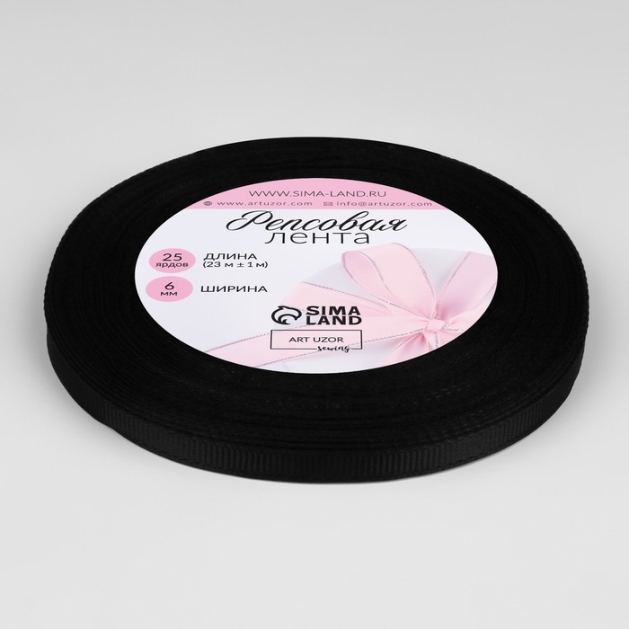 Лента репсовая, 6 мм, 23 ± 1 м, цвет чёрный №39