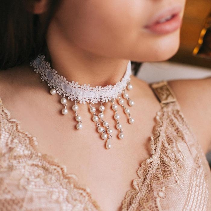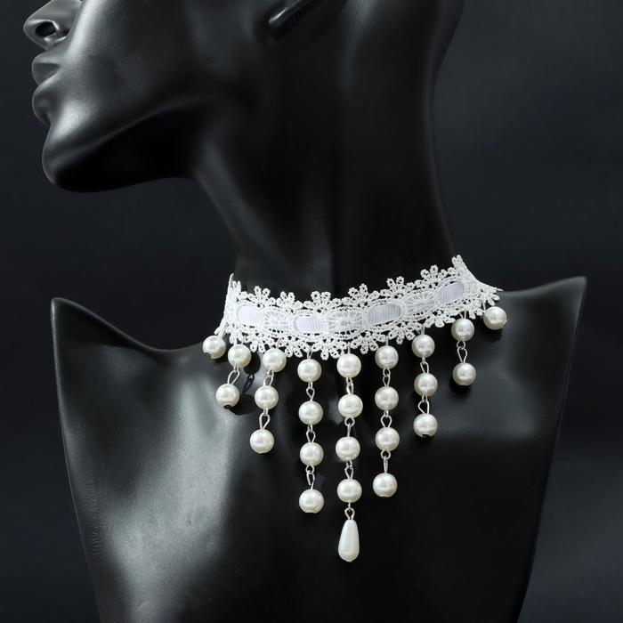 Чокер «Александрия» кружево, бусины, цвет белый, L=30 см