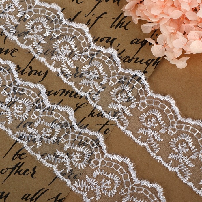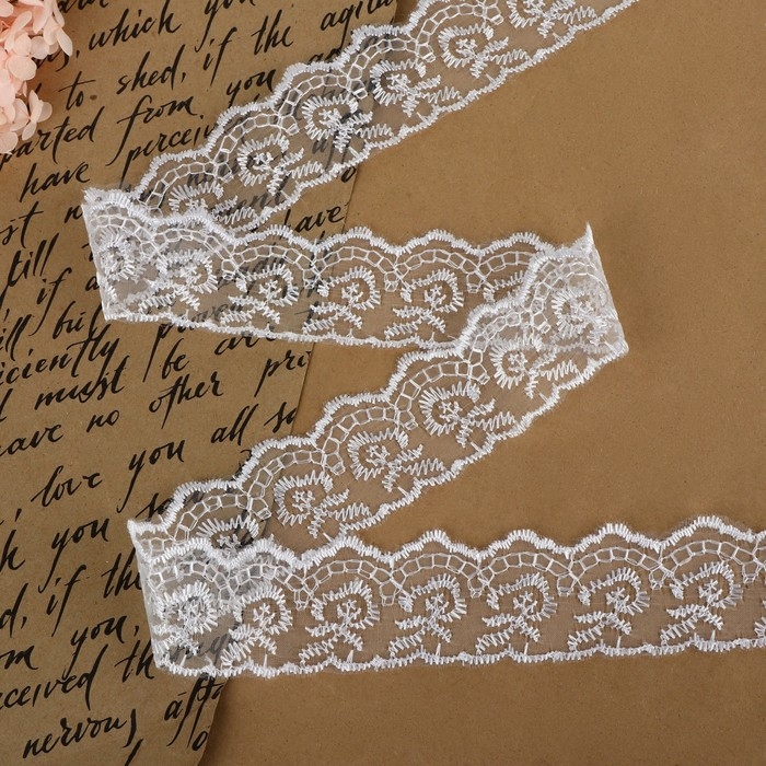 Кружево органза, 40 мм × 9 ± 0,5 м, цвет белый