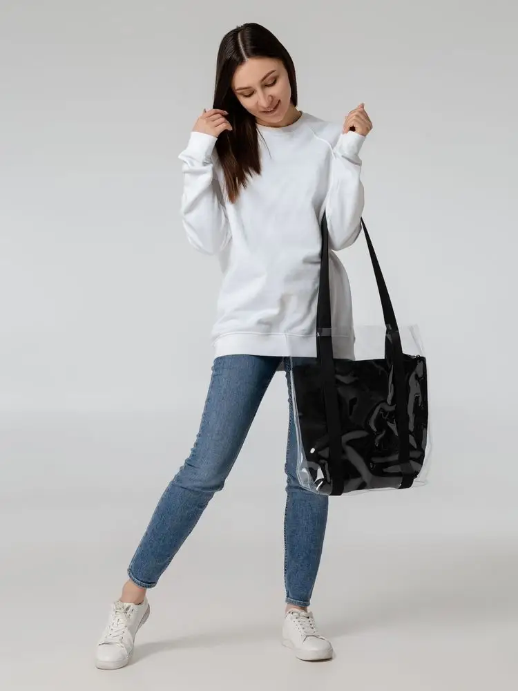 Шопер из ПВХ не промокает, легко чистится и выглядит стильно в любое время года и при любой погоде.