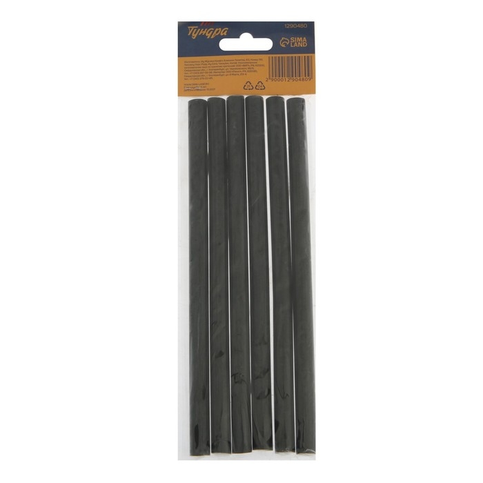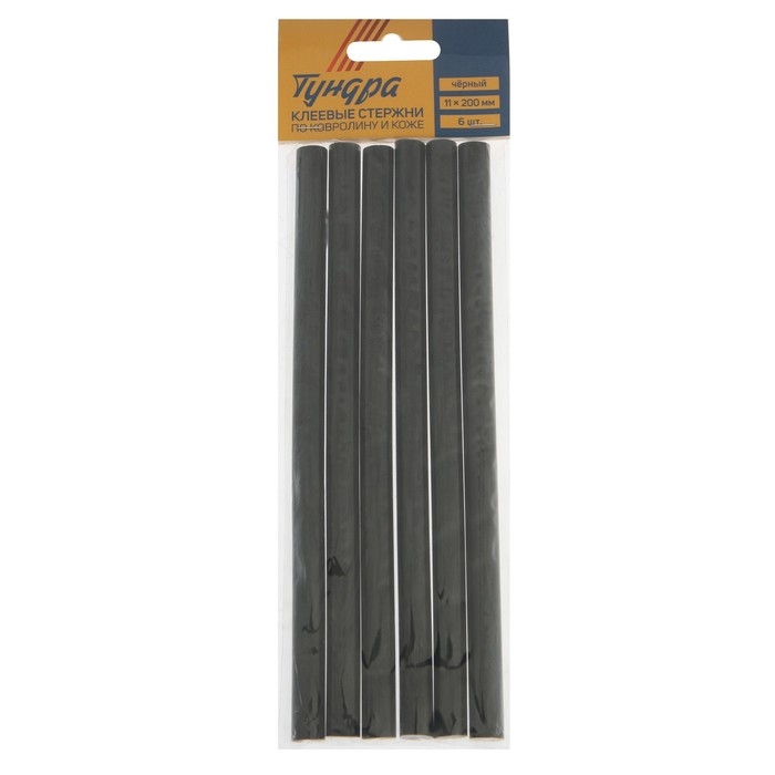 Клеевые стержни ТУНДРА, 11 х 200 мм, черные (по ковролину и коже), 6 шт.