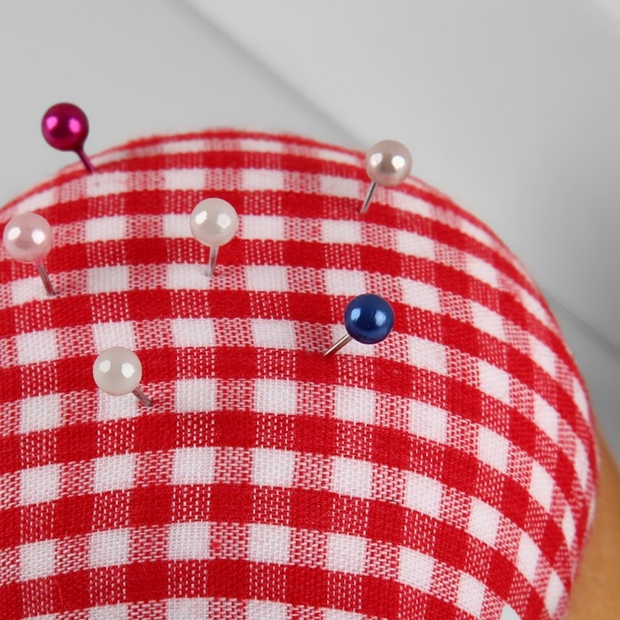 Игольница «Круг», на деревянной подложке, d = 7 см, цвет красный/белый