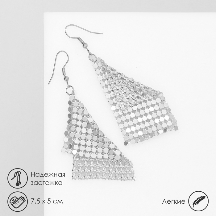 Серьги висячие «Ромб» диско, цвет серебро, 7,5 см