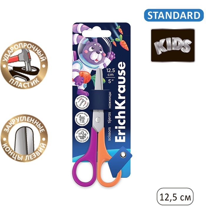 Ножницы детские 13 см, ErichKrause Standard Junior, с закруглёнными концами лезвий, МИКС