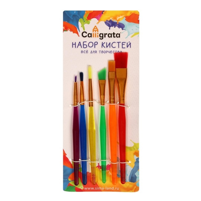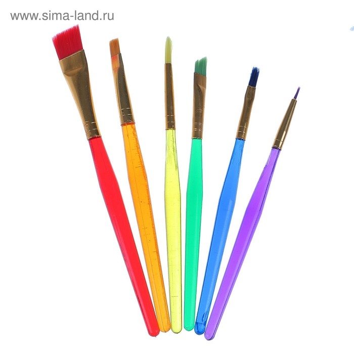 Набор кистей "Радуга" синтетика, 6 штук