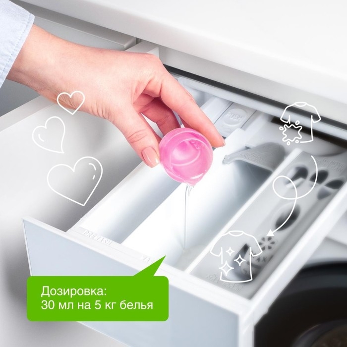 При стирке добавить 30 мл кондиционера на пять килограммов белья. Беречь от детей. При попадании средства в глаза промыть водой. Использовать строго по назначению.